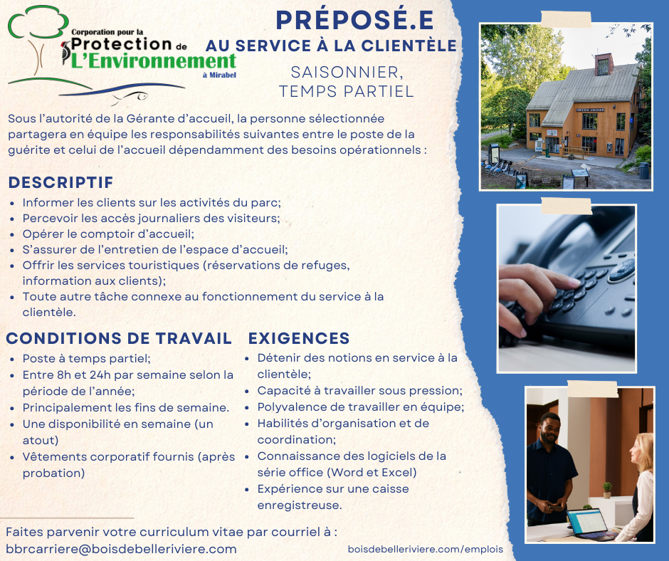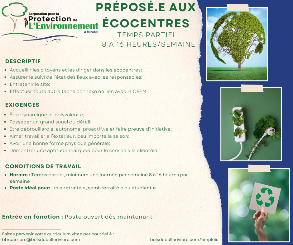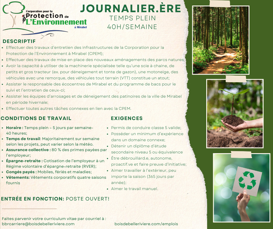 Journalier | Corporation pour la protection de l'Environnement à Mirabel | Temps plein